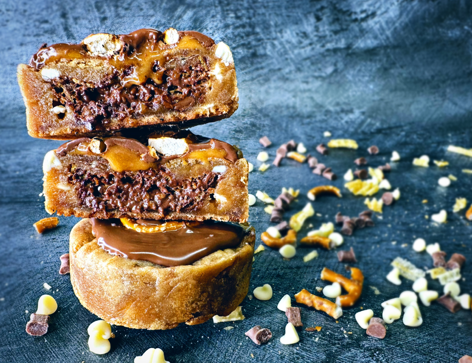 Sugar (Brown), Wheat Flour (Wheat Flour, Calcium Carbonate, Iron, Thiamin, Niacin), Milk Chocolate (11%) (Sugar, Dried Whole Milk, Cocoa Butter, Cocoa Mass, Whey Powder (Milk), Dried Skimmed Milk, Emulsifier (Soya Lecithins), Natural Vanilla Flavouring), White Chocolate (11%) (Sugar, Cocoa Butter, Dried Whole Milk, Whey Powder (Milk), Emulsifier (Soya Lecithin)), Milk Chocolate Ganache (Sugar, Vegetable Fats (Palm, Shea, Rapeseed), Skimmed Milk Powder, Sweet Whey Powder, Fat-Reduced Cocoa Powder, Emulsifier (Lecithins), Caramel (14%)  (Glucose Syrup, Sweetened Condensed Milk, Sugar, Water, Cocoa Butter, Modified Starch, Thickener (Agar, Flavours), Emulsifier (E417 - Sunflower Lecithin, Salt, Acidity Regulator (Citric Acid), Preservative (Potassium Sorbate), Crisps (Potato, Rapeseed Oil, Sea Salt.)), Pretzel (Wheat Flour (with Calcium, Iron, Niacin, Thiamin), Rapeseed Oil, Sea Salt, Dextrose, Acidity Regulator: Sodium Hydroxide, Dried Yeast), Cornflakes (Maize, Sugar, Salt, Barley Malt Extract, Iron, Niacin, Pantothenic Acid, Vitamin B6, Riboflavin, Thiamin, Folic Acid, Vitamin D, Vitamin B12.), Unsalted Butter (Milk), Eggs, Sea Salt, Baking Powder (Raising Agents E500, E450, Maize Starch)